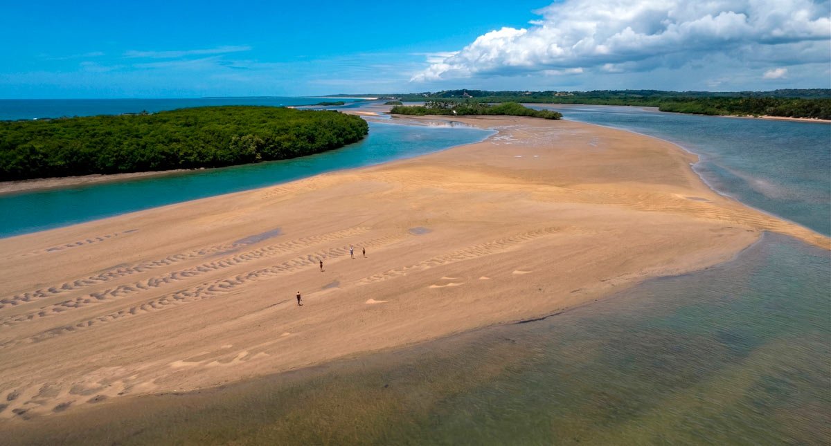 Uma joia deserta com águas mornas e o charme de um rio que corre paralelo à areia.
